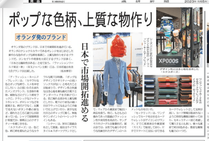Newspaper Article written by Senken Newspaper. Dutch brands venture into the Japanese market, making their debut at Fashion World Tokyo.
